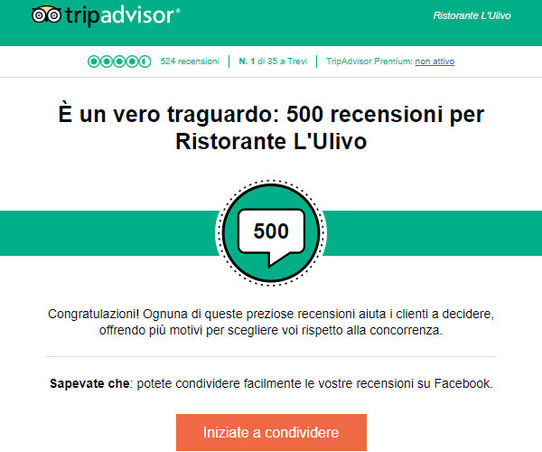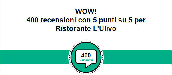 WOW! 400 recensioni con 5 punti su 5 per Ristorante l’ Ulivo