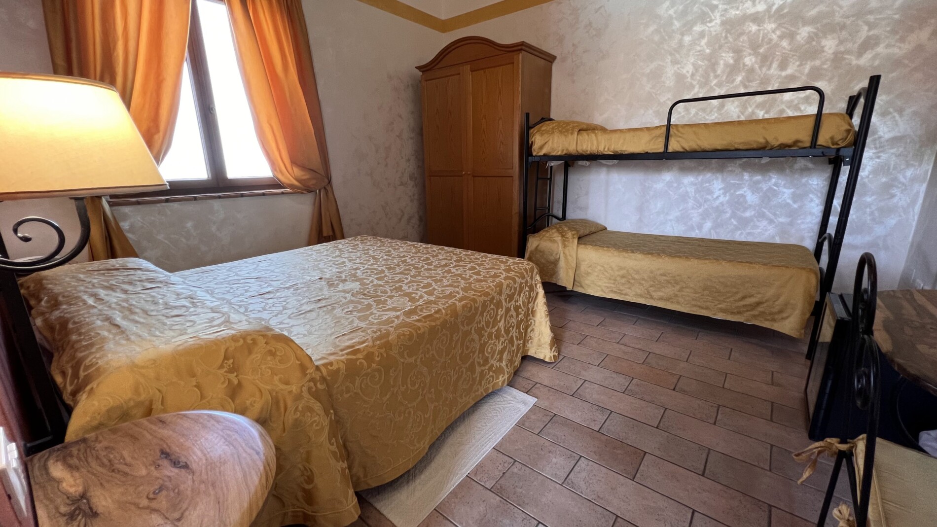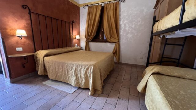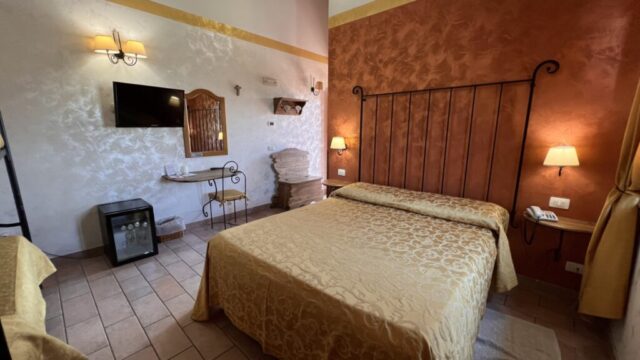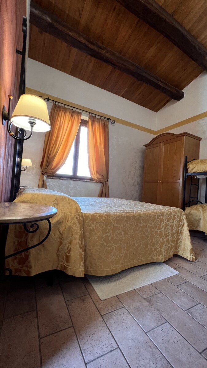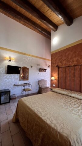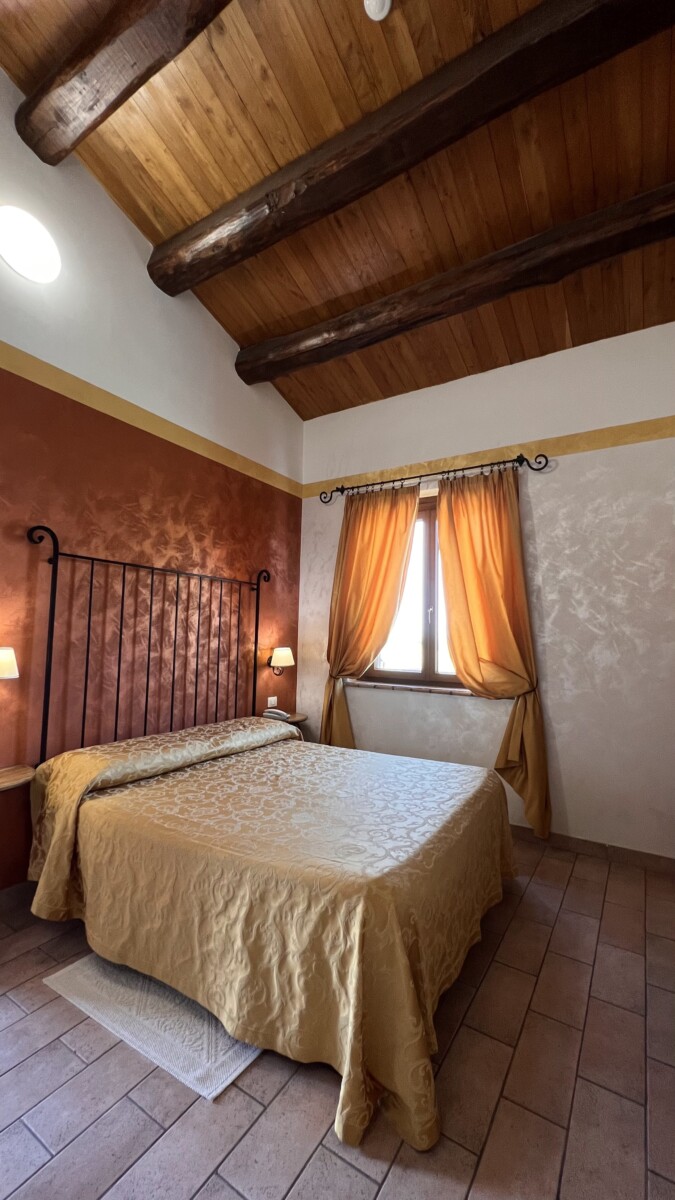 Le ampie stanze sono accoglienti, luminose e curate nei dettagli: nulla è lasciato al caso. Arredate con un gusto che richiama la tradizione e ravvivate dalle accese cromie delle pareti e dei tessuti, offrono una stupenda vista sulle colline circostanti, per un soggiorno di puro relax, immersi nel verde e nel silenzio. Troverete in dotazione ogni comodità (ampio bagno con doccia e phon, climatizzatore con possibilità di diversificare la temperatura tra gli ambienti, Tv color 24″ con satellite, wi-fi, cassaforte, telefono diretto, frigo bar).