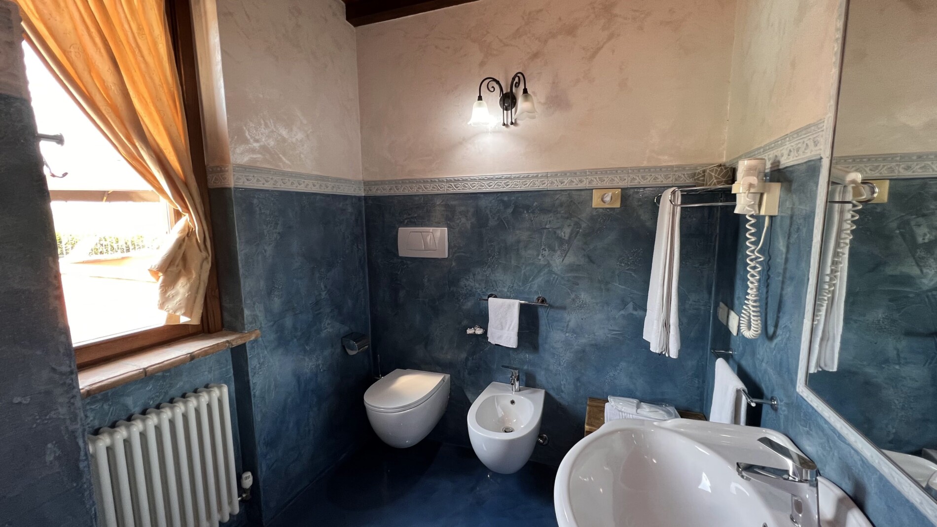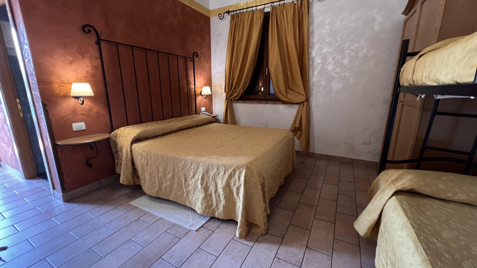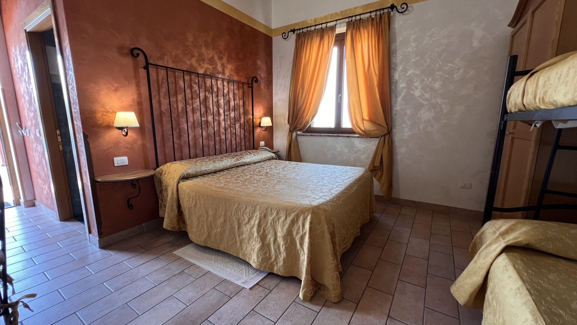 Le ampie stanze sono accoglienti, luminose e curate nei dettagli: nulla è lasciato al caso. Arredate con un gusto che richiama la tradizione e ravvivate dalle accese cromie delle pareti e dei tessuti, offrono una stupenda vista sulle colline circostanti, per un soggiorno di puro relax, immersi nel verde e nel silenzio. Troverete in dotazione ogni comodità (ampio bagno con doccia e phon, climatizzatore con possibilità di diversificare la temperatura tra gli ambienti, Tv color 24″ con satellite, wi-fi, cassaforte, telefono diretto, frigo bar).